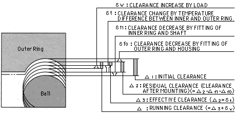 轴承上的载荷使其弹性变形,并增加内部间隙。