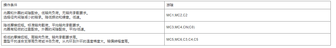 从理论上讲,轴承的最大使用寿命只有很小的预载。然而,即使理论预载稍微增加,也会对轴承寿命产生相当不利的影响。因此,应选择正间隙。MC3通常用于微型或小型轴承,普通轴承的标准间隙和薄壁轴承的间隙不得大于“标准”。